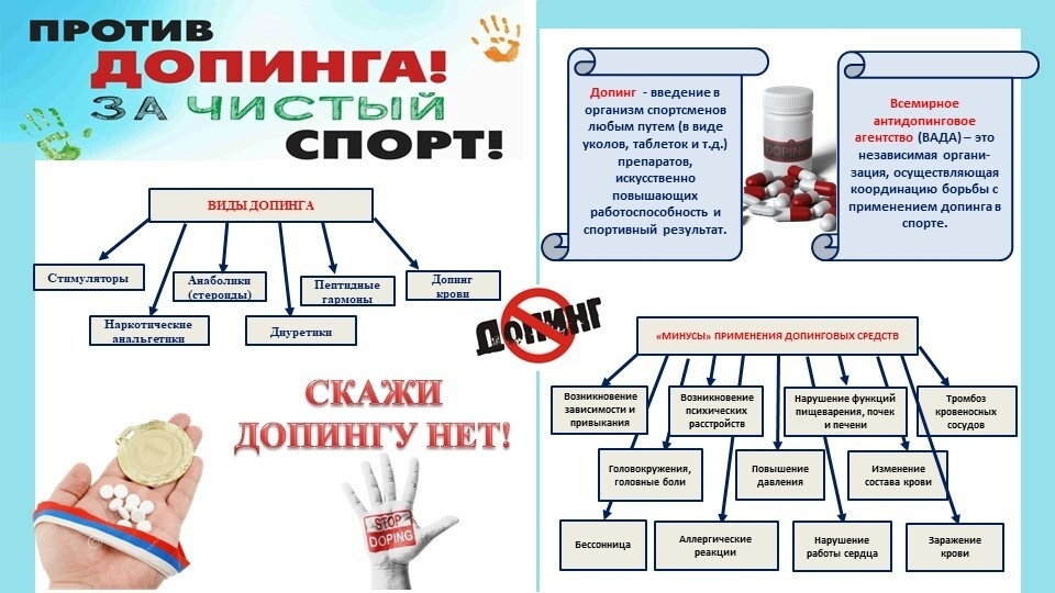Допинг в спорте — употребление запрещённых способов, методов или препаратов (в том числе биологически активных веществ), повышающих спортивные результаты. На сегодняшний день применение допинга стало одной из самых актуальных проблем в мировом спортивном движении. Допинговые скандалы происходят на глазах у миллиардов зрителей и наносят невосполнимый ущерб репутации государства и всему спорту. По информации Всемирного антидопингового агентства и Интерпола, нелегальный оборот главного допинга (например, анаболических стероидов) уже превышает оборот криминального сбыта наркотиков. Одной из важнейших задач в антидопинговой деятельности является разработка и внедрение информационно-образовательных программы, которые нацелены не только на спортсменов, тренеров или врачей. Во многих видах спорта просматривается хорошо скоординированная деятельность антидопинговых служб, представителей спортивных федераций, оргкомитетов, менеджеров, а нередко и самих спортсменов по «управлению» системой антидопингового контроля и его результатов.